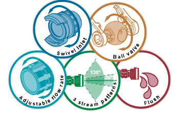 • Podesivi protok: Kalibrirani protoci lako se biraju pomoću indeksiranog prstena